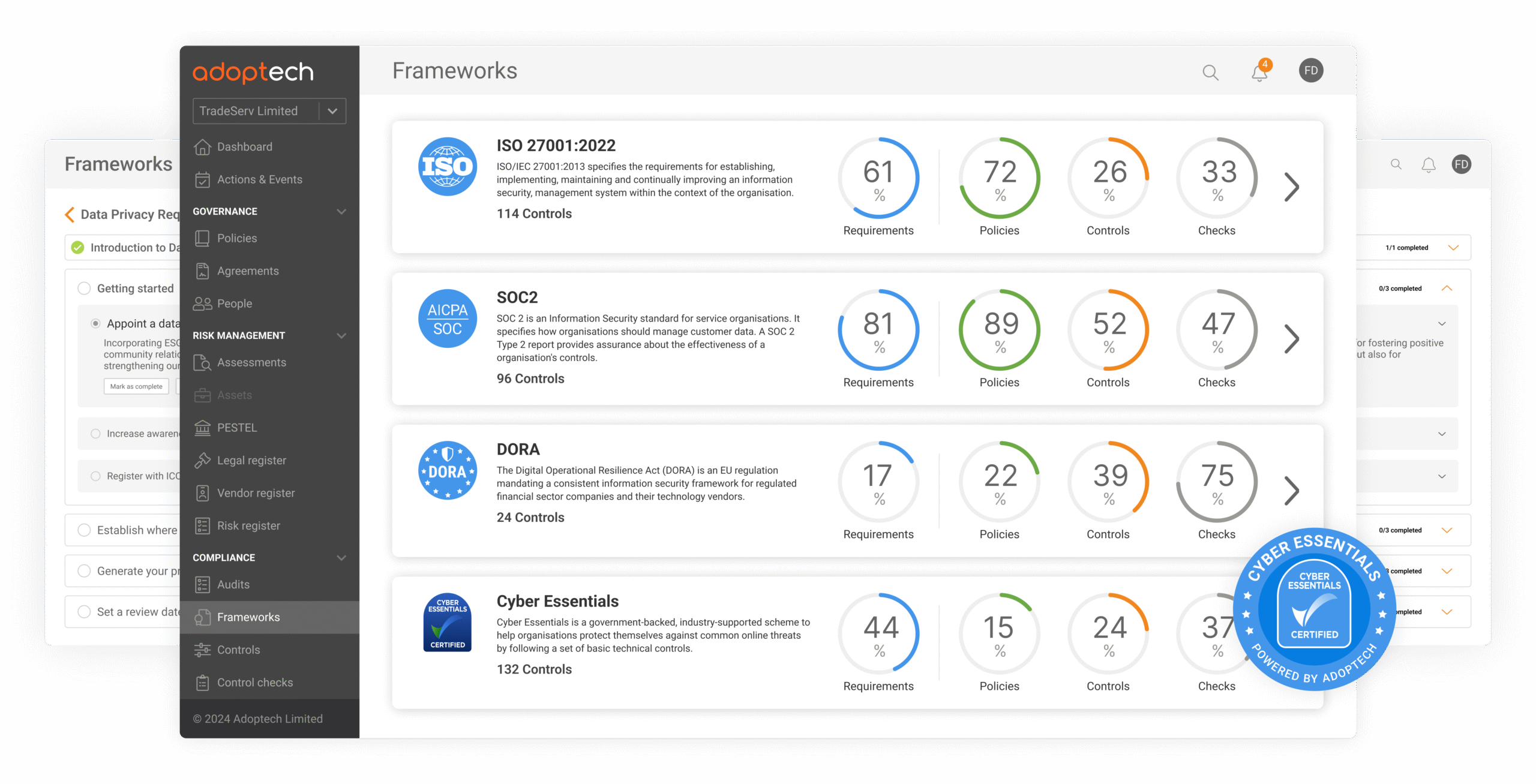 “Relying on Adoptech’s intuitive functionality and helpful team has made the process of implementing ISO 27001 far smoother than we had expected. We feel confident about migration to the 2022 standards, which Adoptech is managing seamlessly.”