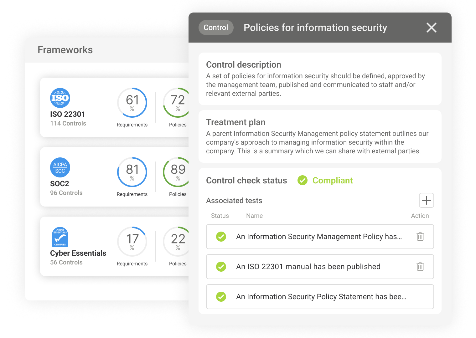We make it easy to manage, maintain and automate all the relevant ISO 22301 controls in one place.